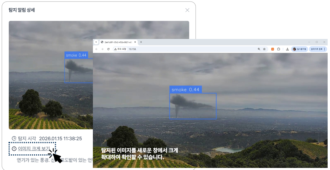 - 채팅창에서 탐지 결과 이미지를 별도 창으로 크게 확인할 수 있습니다.