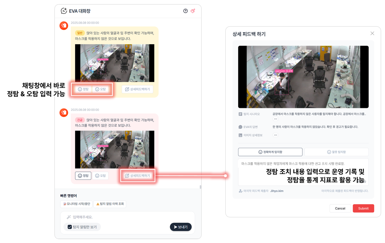 앞으로도 EVA는 복잡한 현장 상황을 더 잘 이해하고, 운영자가 더 빠르고 명확하게 의사결정을 내릴 수 있도록 진화해 나가겠습니다.