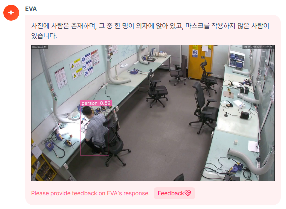 EVA는 작업자의 보호구 착용 상태와 안전 규정 준수 여부를 지속적으로 감시하여,